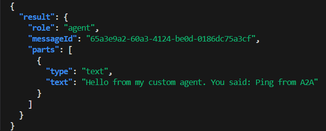 Some servers return a “Task + Message” envelope. If you see that, extract the final reply like this: