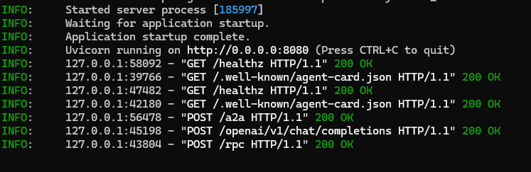 Congratulations! You can now: Build a full A2A agent from a single function. Wrap existing LangGraph logic and expose it via A2A, JSON-RPC, or OpenAI-compatible routes. Ship a multi-agent service with simple routing — and swap providers/frameworks by environment only.