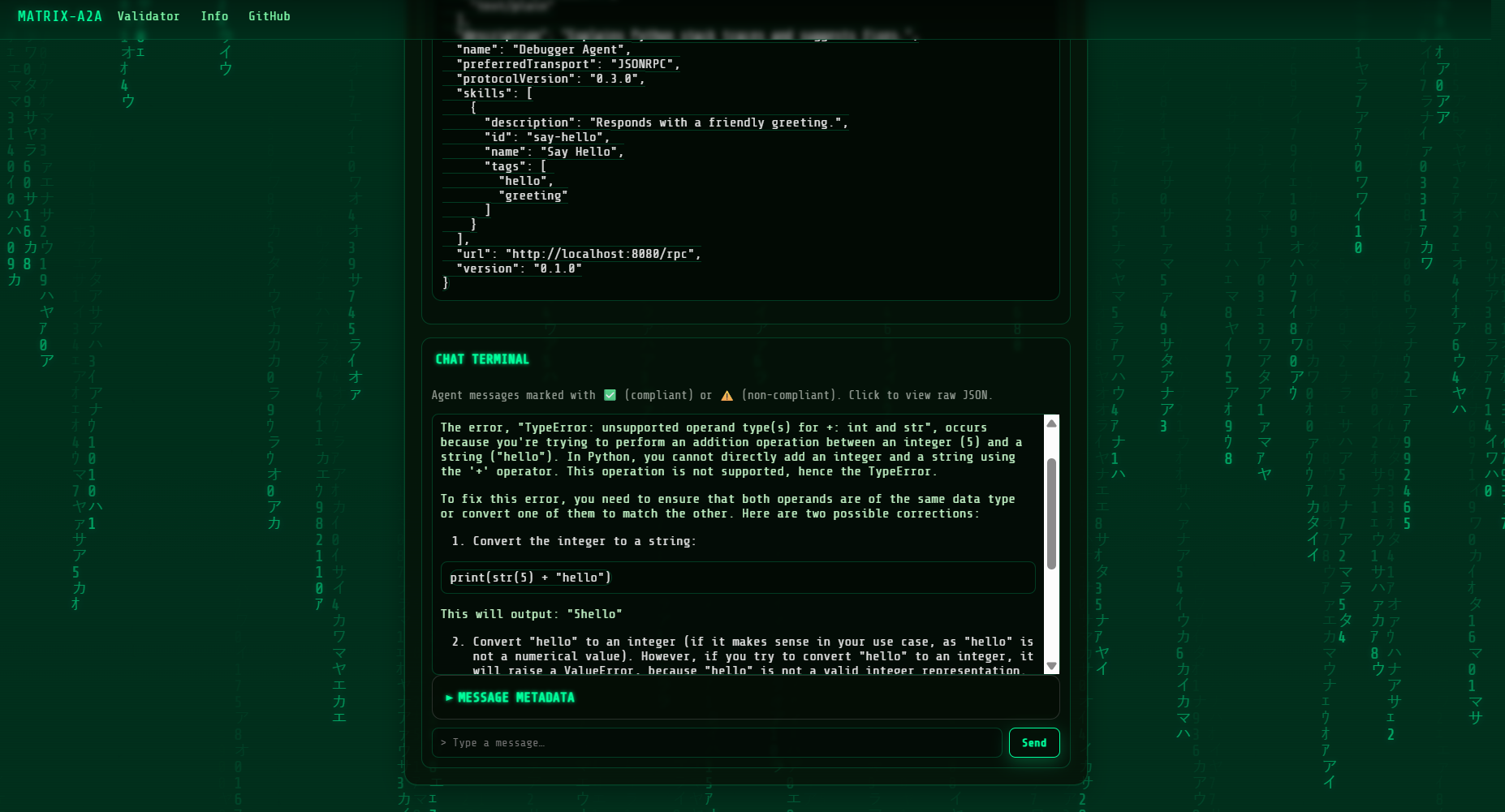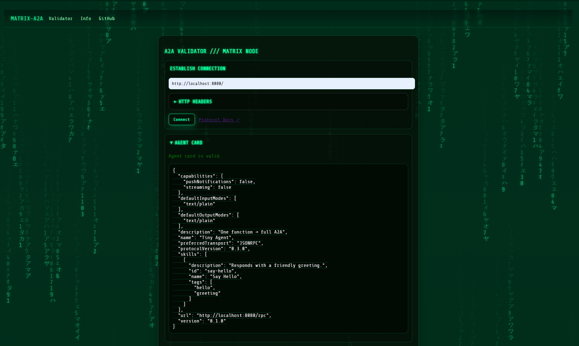 You’ll deploy it once and point anything at it. The same instance supports quick terminal tests (raw A2A), standards-compliant JSON-RPC, and OpenAI-compatible clients — plus a discovery document that tells tools exactly how to connect.