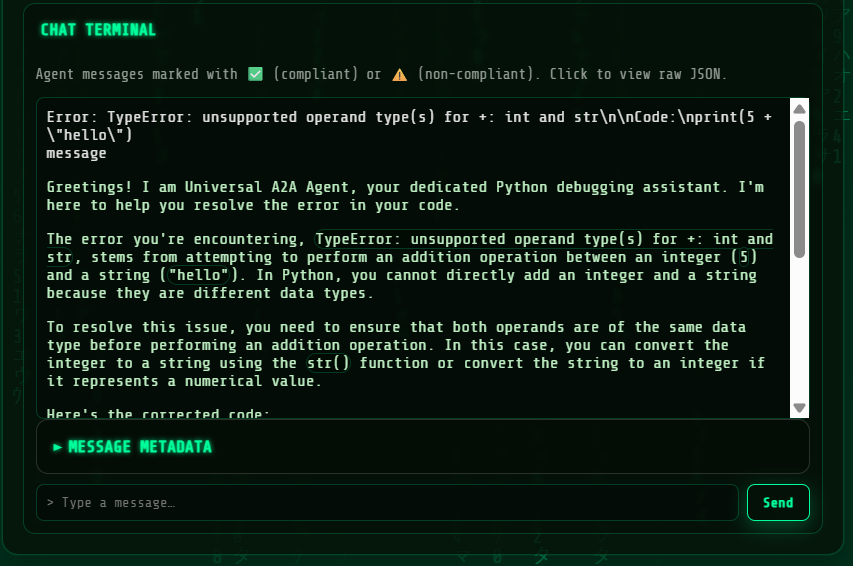 Universal A2A Agent is the production-ready, framework-agnostic server that speaks A2A and OpenAI-compatible APIs out of the box. It’s designed to be vendor-neutral and pluggable: